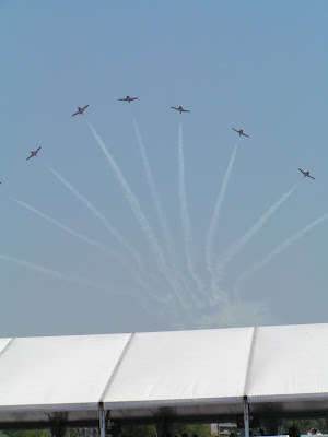 Lo cierto es que he de reconocer el magnífico trato que nos dispensaron desde el minuto 1. En algo se tenía que notar ese pase VIP del club Prestige al que nos habían invitado. Sin aglomeraciones y sin caminatas bajo un sol de justicia, en barquita vamos, llegamos a la carpa desde donde asistiríamos al espectáculo de la F1 y a la exhibición aérea previa a la carrera.
